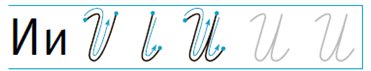 Трудно первоклассникам начинать вести линию и точно остановить движение руки, поэтому в образце на строке точкой показано начало движения руки, стрелкой – её продолжение.